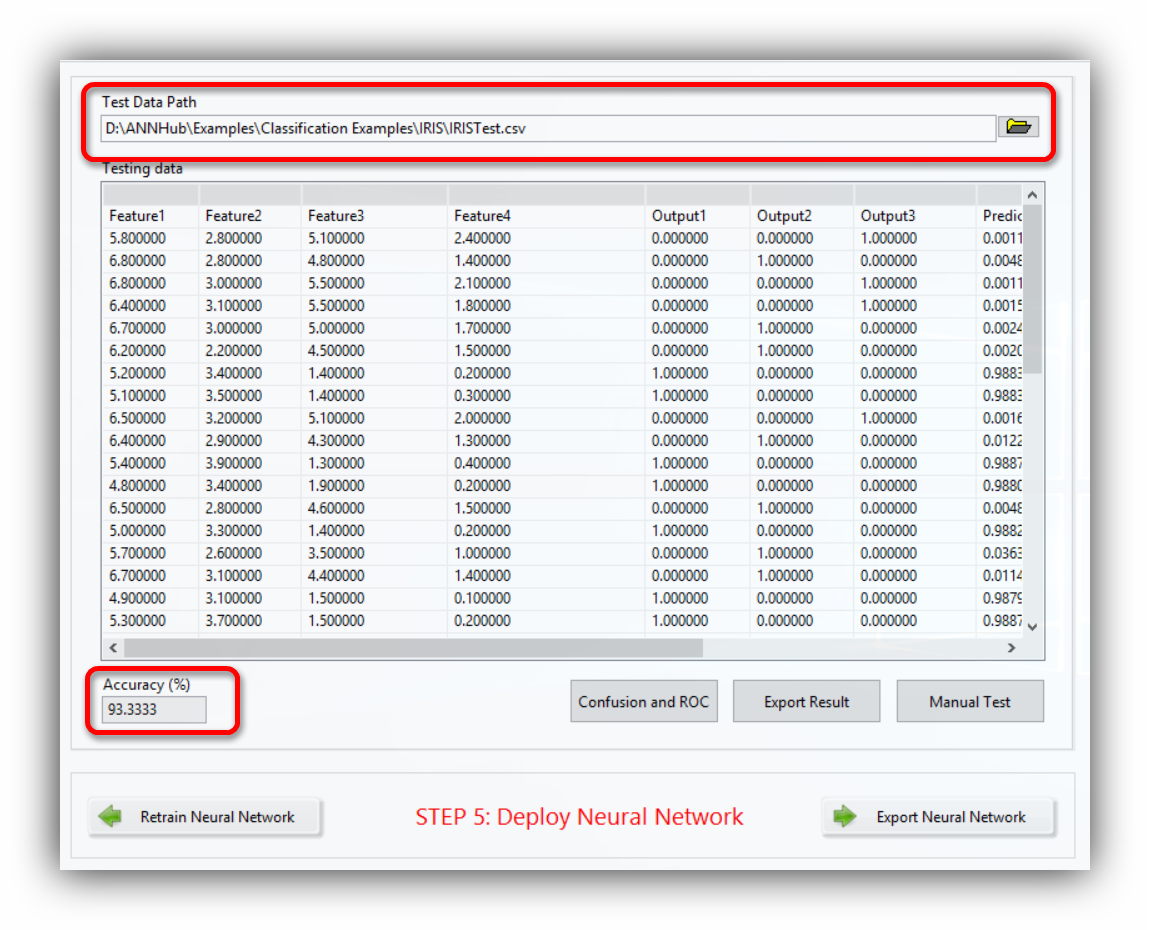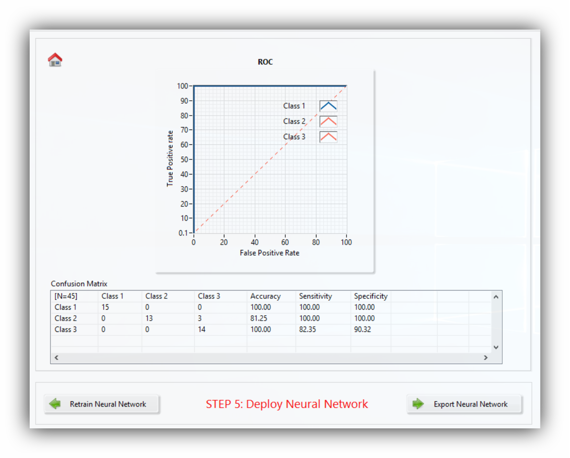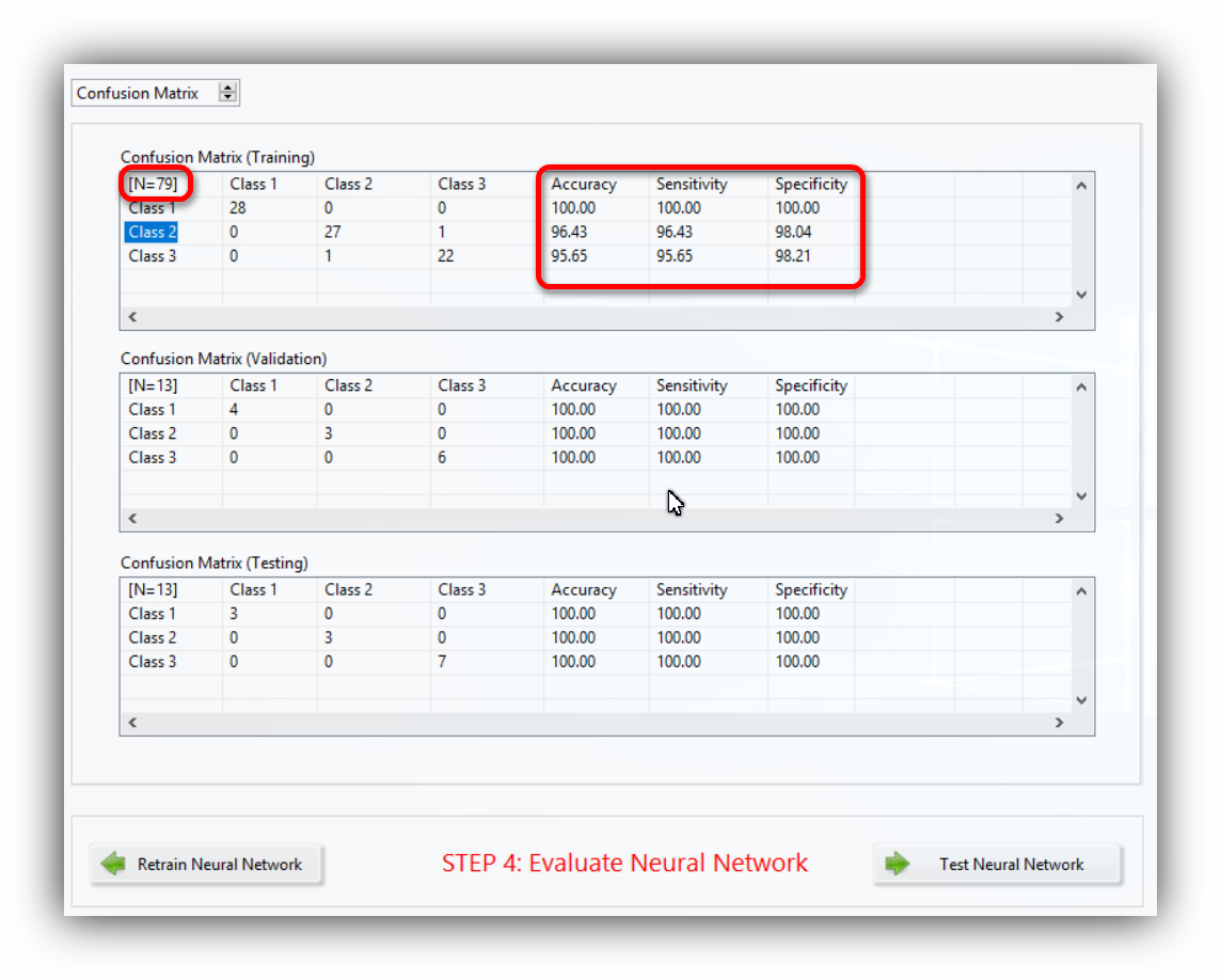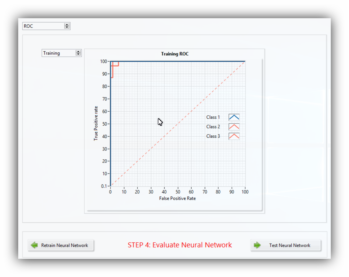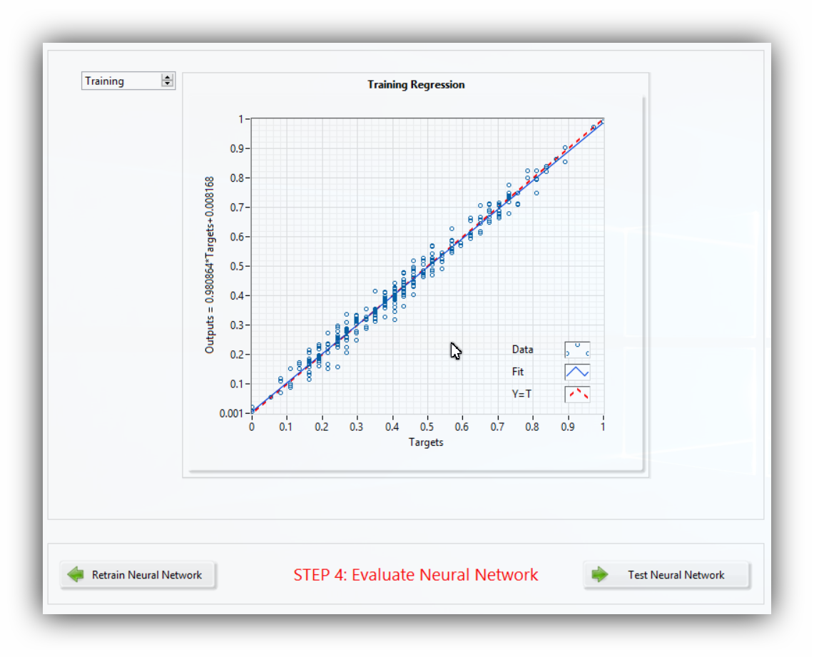 • After training is completed, you can re-adjust the training parameter and press Retrain Neural Network if needed