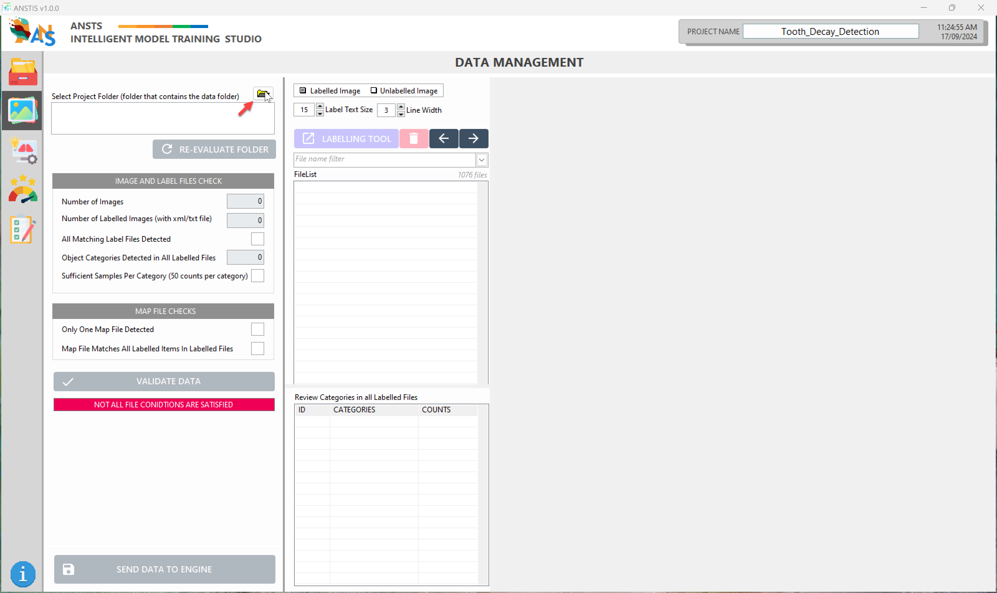 If you modify your dataset folder during this process, please press Re-evaluate folder to refresh the data in ANSTS. After sending data to engine, you cannot make changes to your project's dataset.