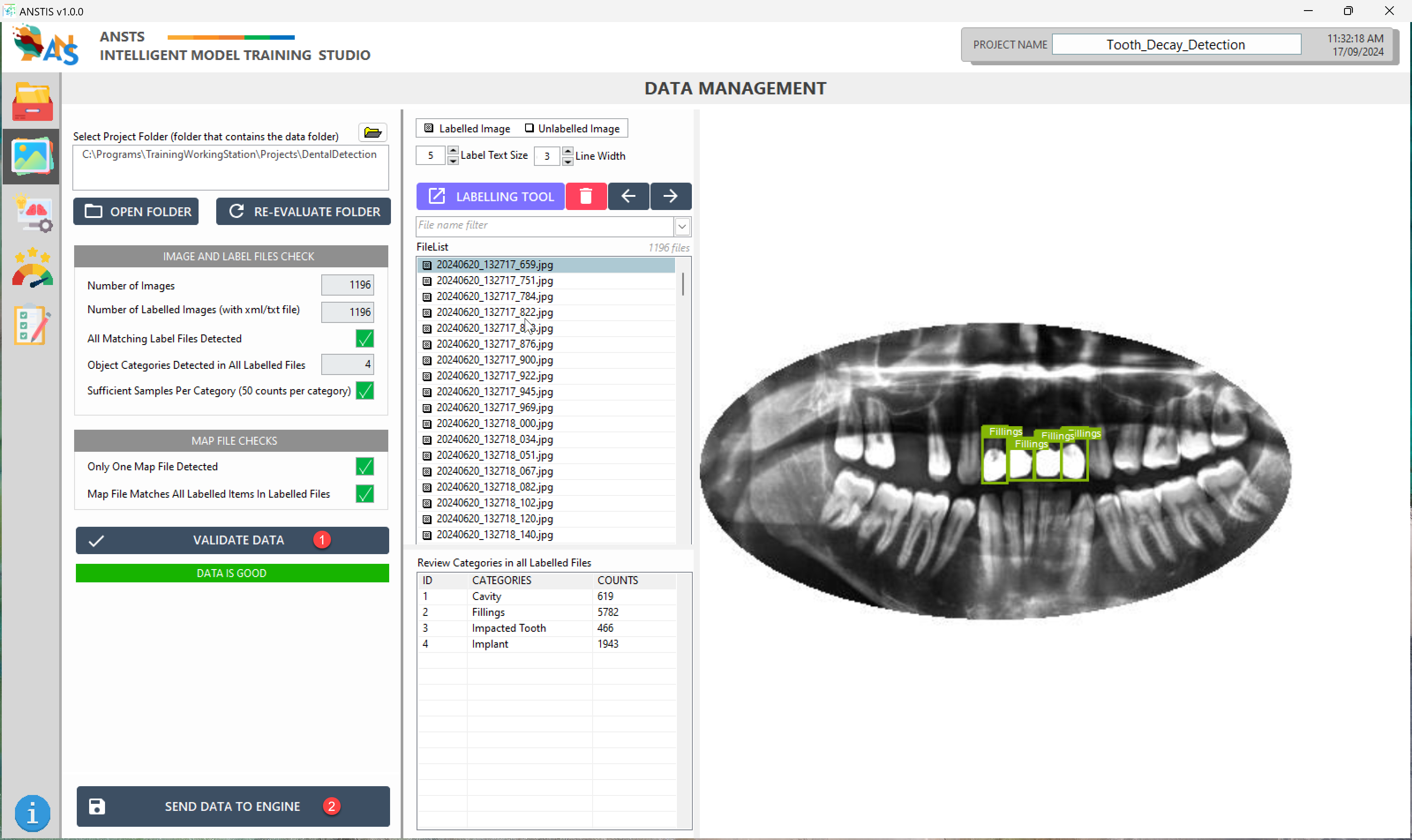 Once data is GOOD, press Send Data To Engine for the training phase.