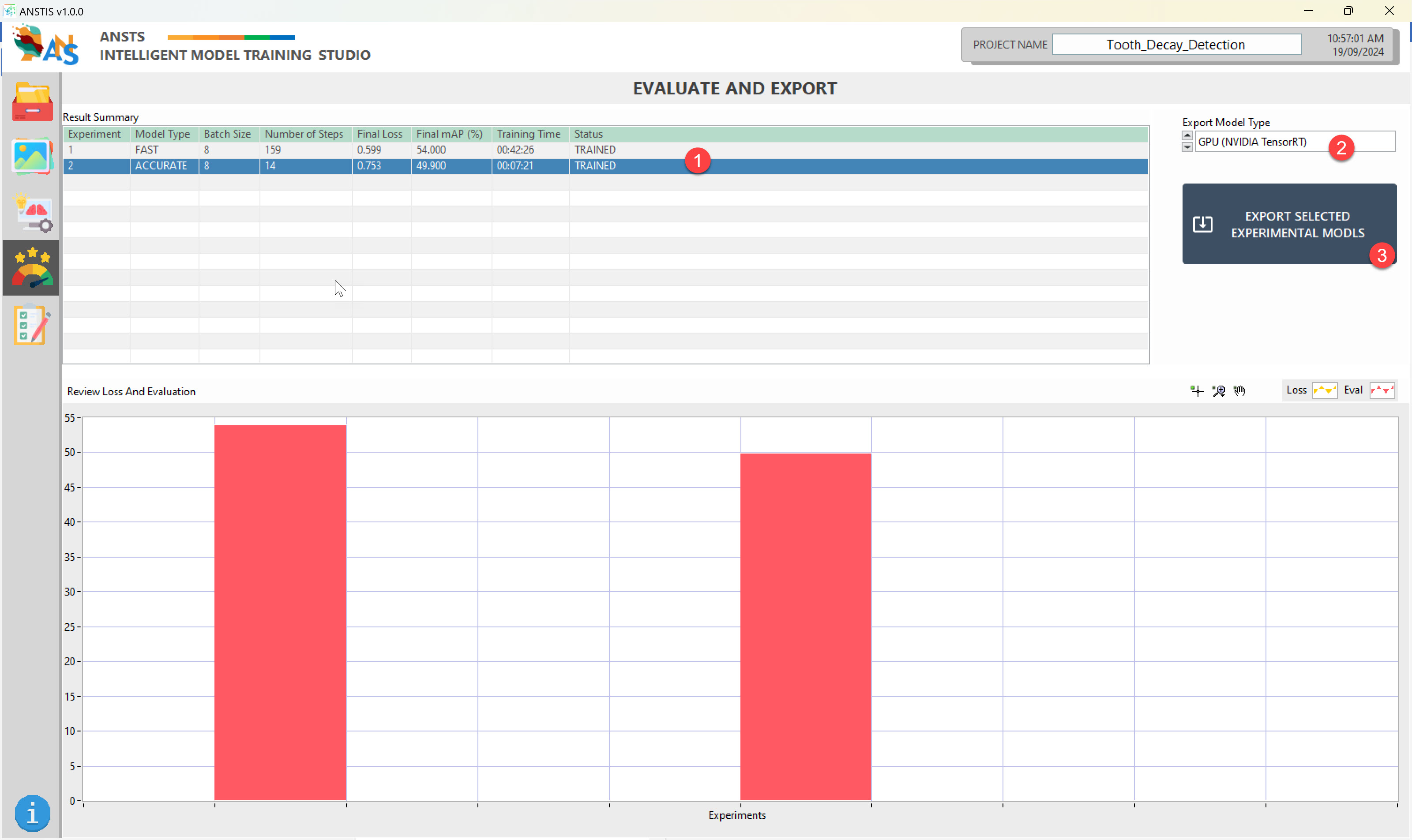 ANSTS provides an intuitive report that helps users choose the best experiment (model) for their application. This information includes model type, final mAP, etc.