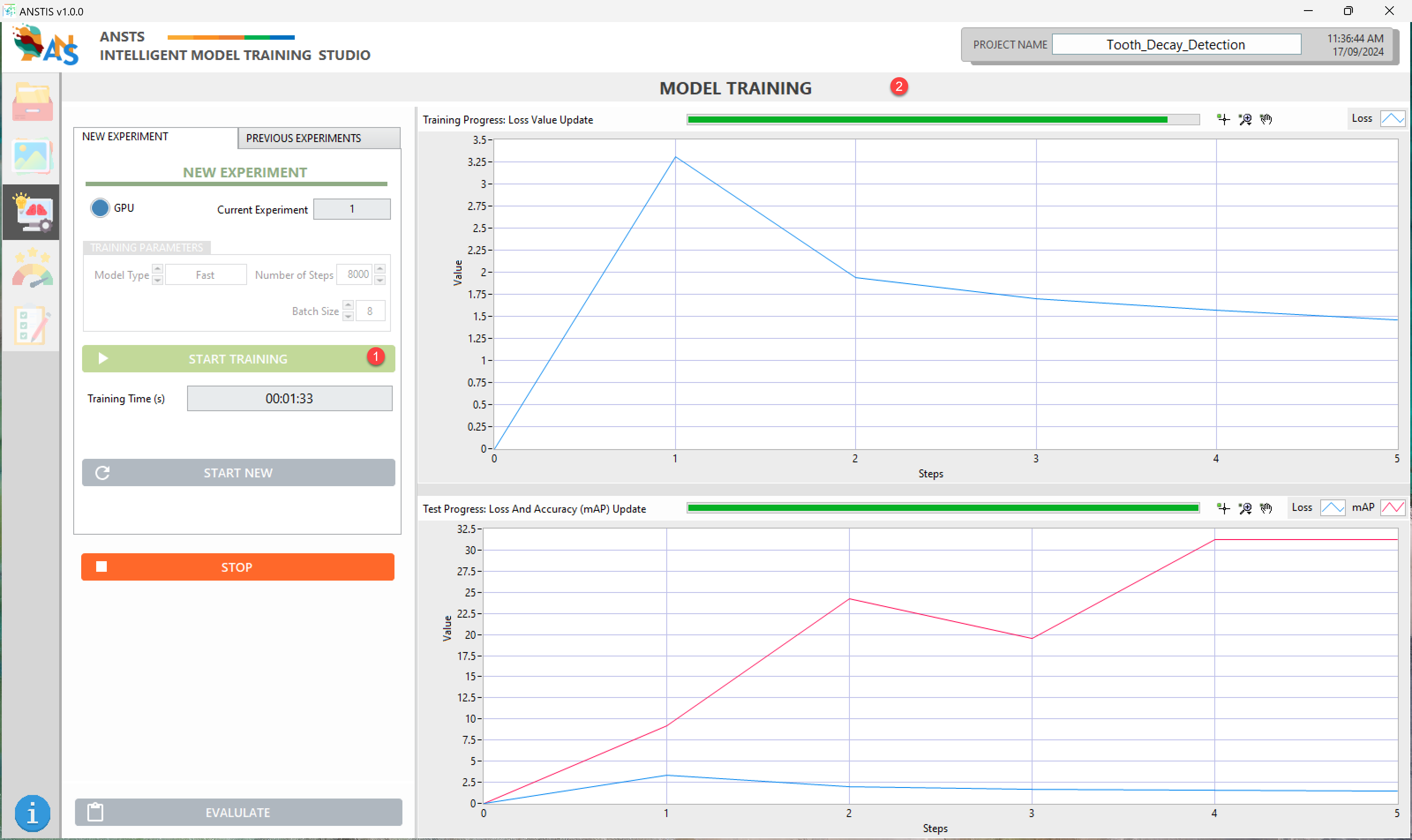 Based on the mAP value, you will know whether the model can continue to learn from this experiment (if the mAP can still increase), and you can decide to let the system finish training or stop it manually.