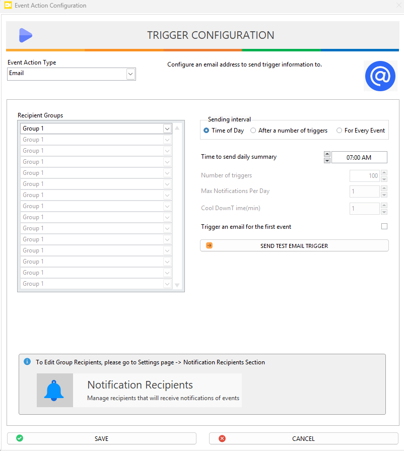 Send Test Email Trigger: Use this button to verify notification setup and delivery.