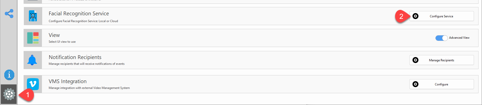 To access the service, go to Facial Recognition Service in the Setting page. You will be prompted to the Facial Recognition Service dialogue