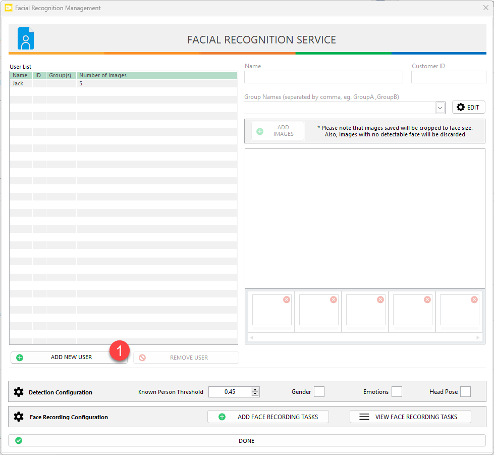 • Maximum number of face images to record: set how many images you want to capture before stopping