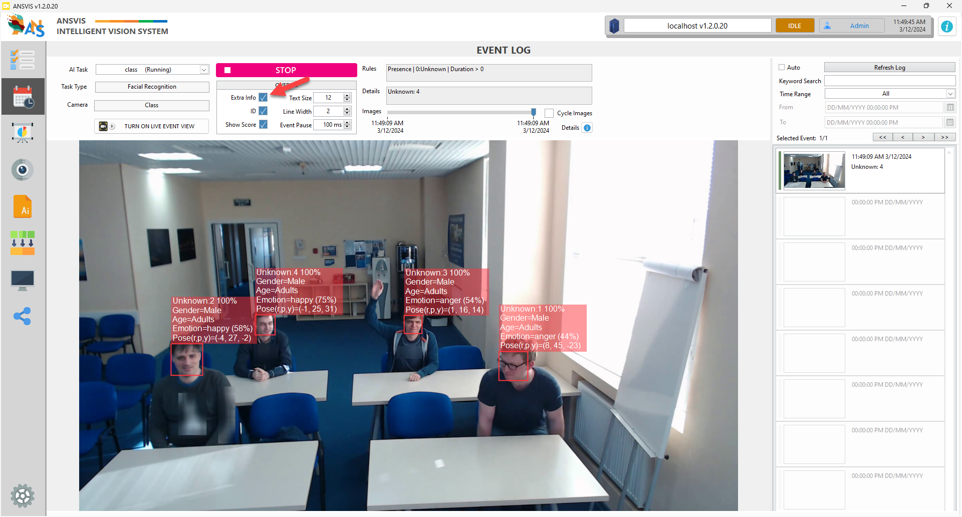 1. Go to the Event Log page of a Facial Recognition AI Task