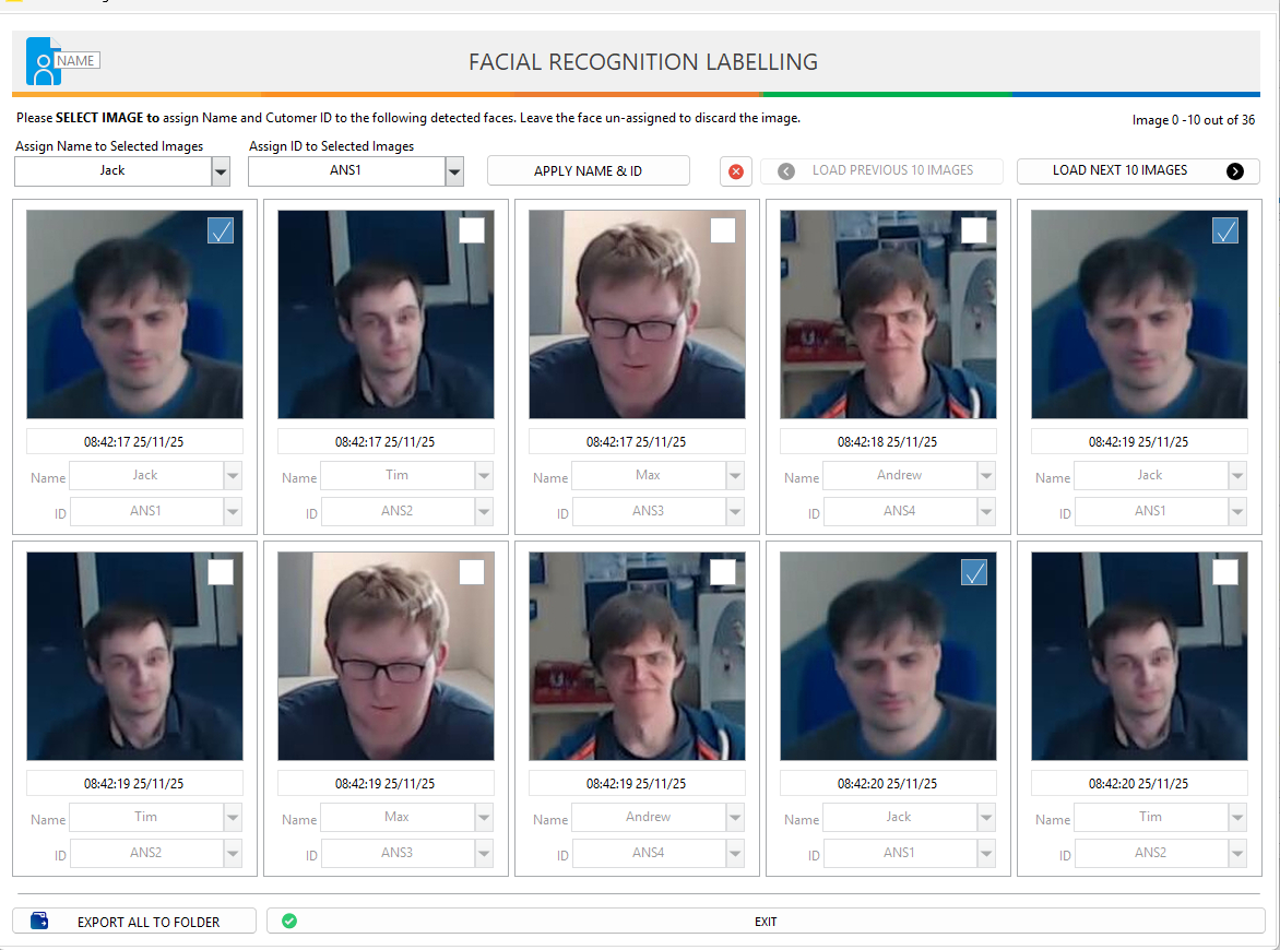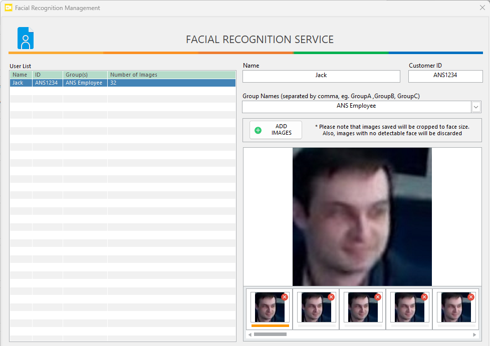 ANSVIS offers a face-recording function that automatically capture faces images from camera, allowing you to quickly collect and assign face images to user within ANSVIS.