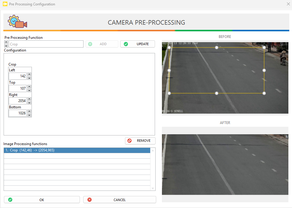 The Camera Pre-Processing feature plays a vital role in enhancing the quality and relevance of video input before it is passed to AI analysis engines. By applying functions like cropping, brightness adjustment, contrast enhancement, and dynamic ROI tracking, the system can focus on important regions of interest and improve detection accuracy. This step ensures that the input fed to the AI models is clean, focused, and optimized, leading to more reliable and efficient results in tasks such as object detection, license plate recognition, or behavior analysis.