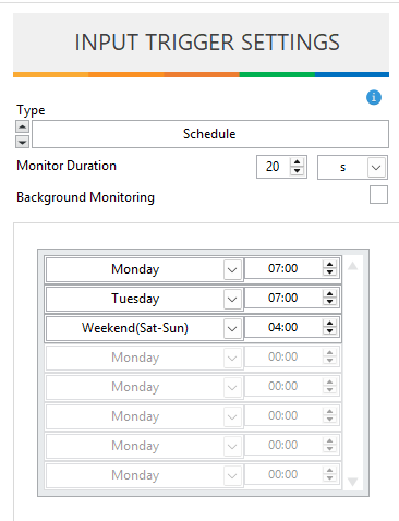 The Schedule Trigger option allows you to execute a task based on a predefined day and time of the week.