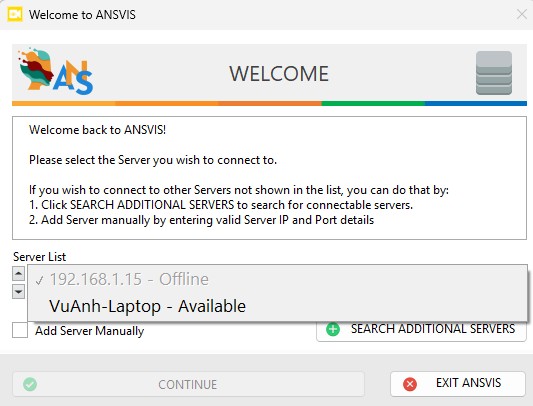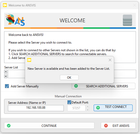 You can manage and connect to different ANSVIS Servers later from the Server Management