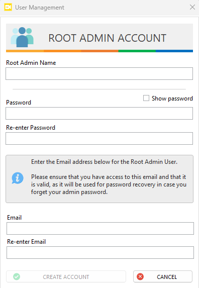 After successfully activating your ANSVIS Server license, you will be prompted to create a Root Admin Account. This is a critical step for securing access to the system.