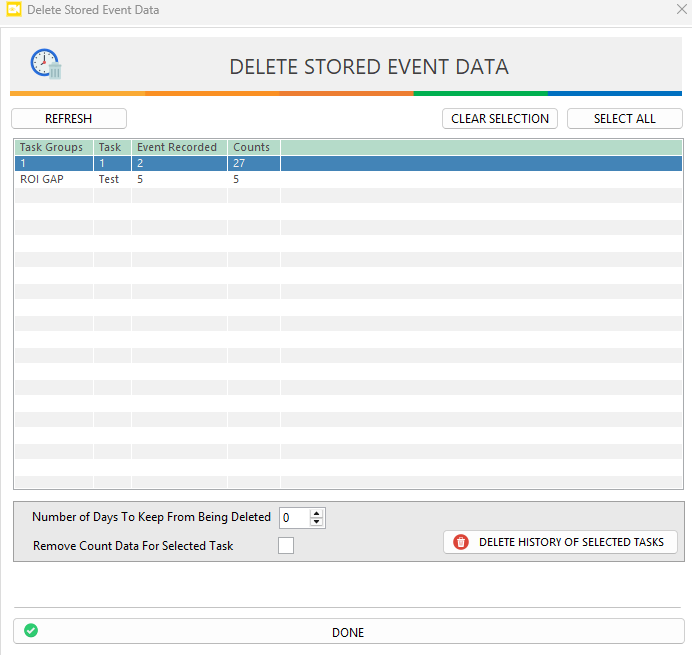 • Press Delete History Of Selected Tasks to delete event recorded based on your selection