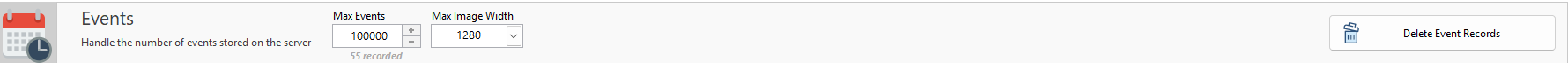 • Set the maximum number of events to retain in server storage. Once this limit is reached, ANSVIS will automatically delete the oldest events to make room for new ones.