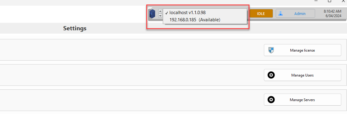 Once connecting to a server, you can still manage and switch to different servers in the network without having to relaunch ANSVIS Client