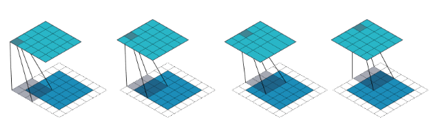 • Same: preserve the spatial dimensions of the volume such that the output volume size matches the input volume size. In order to achieve this, there is a one-pixel-width padding around the image, and the filter slides outside the image into this padding area.