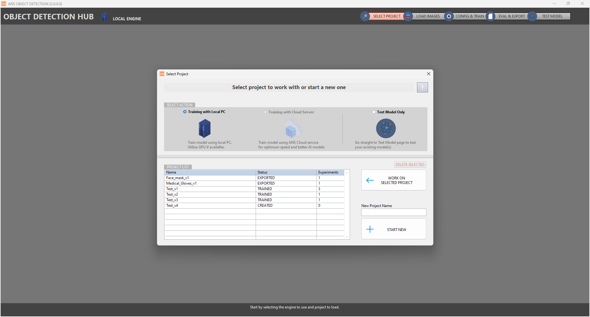 Each project manages the training experiments and models of a training dataset. To start creating a new project: